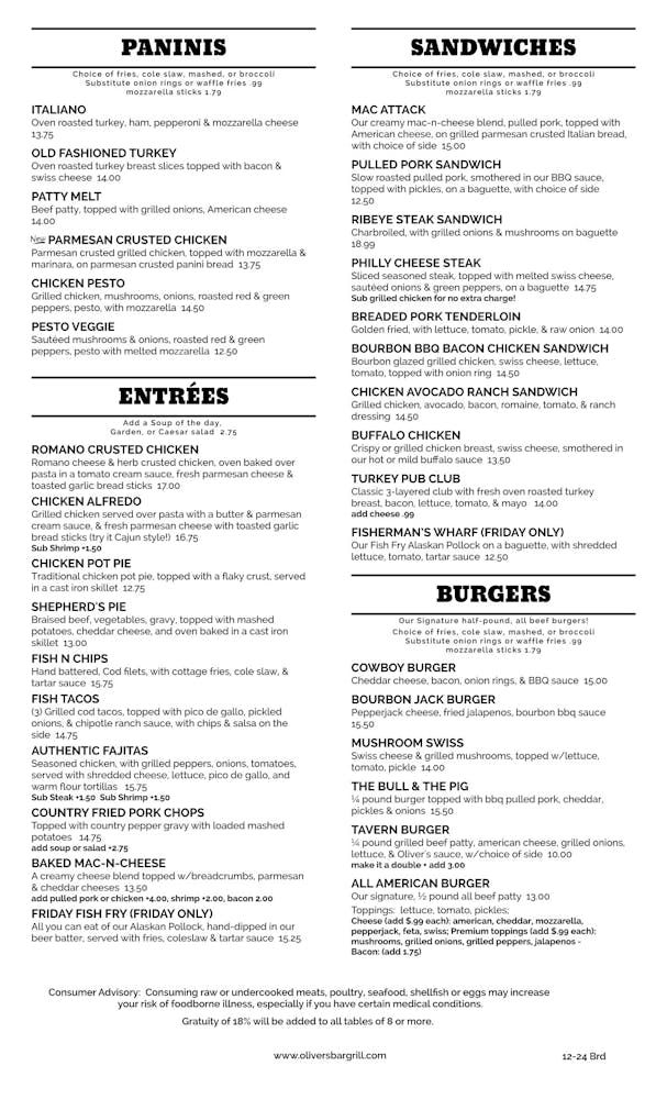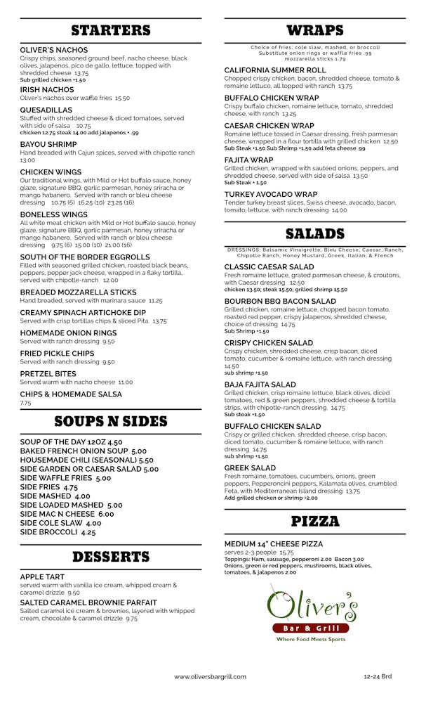 1/4 pound beef patty, american cheese, grilled onions, lettuce, & Oliver's sauce, with choice of side